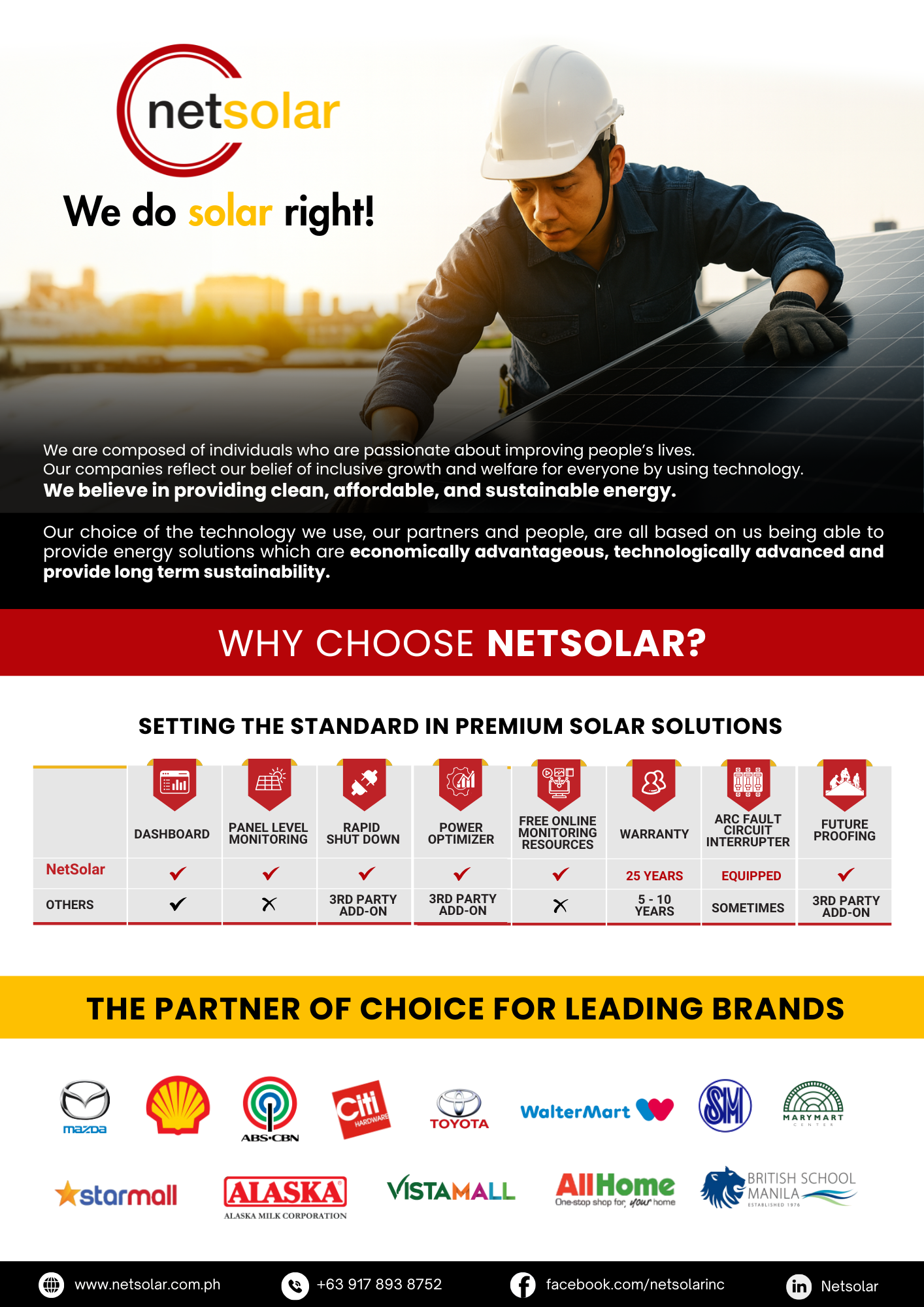 At NetSolar Philippines, our choice of technology, partners, and people is guided by a single mission— to deliver affordable, innovative, and sustainable solar energy solutions in the Philippines.